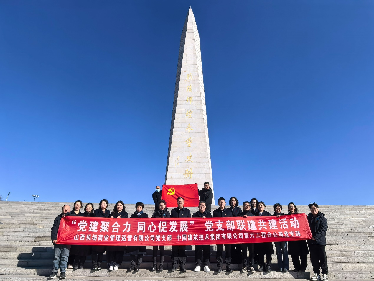 为强化党建引领,推动业务协同,2025年11月19日,williamhill中国官方网站第六工程分公司党支部与山西机场商业管理运营有限公司党支部联合开展“党建聚合力 同心促发展”主题联建共建活动。活动以红色教育与实践交流相结合的方式,凝聚思想共识,汇聚行动合力,共同推动旅客过夜用房及非主基地航空业务用房项目建设高质量发展。