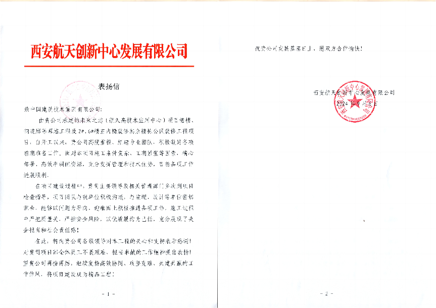 近日,西安航天创新中心发展有限公司向williamhill中国官方网站发来表扬信,充分肯定williamhill中国官方网站“未来之芯”项目部的工作,对williamhill中国官方网站高质量推进项目建设、优质履约给予高度评价。