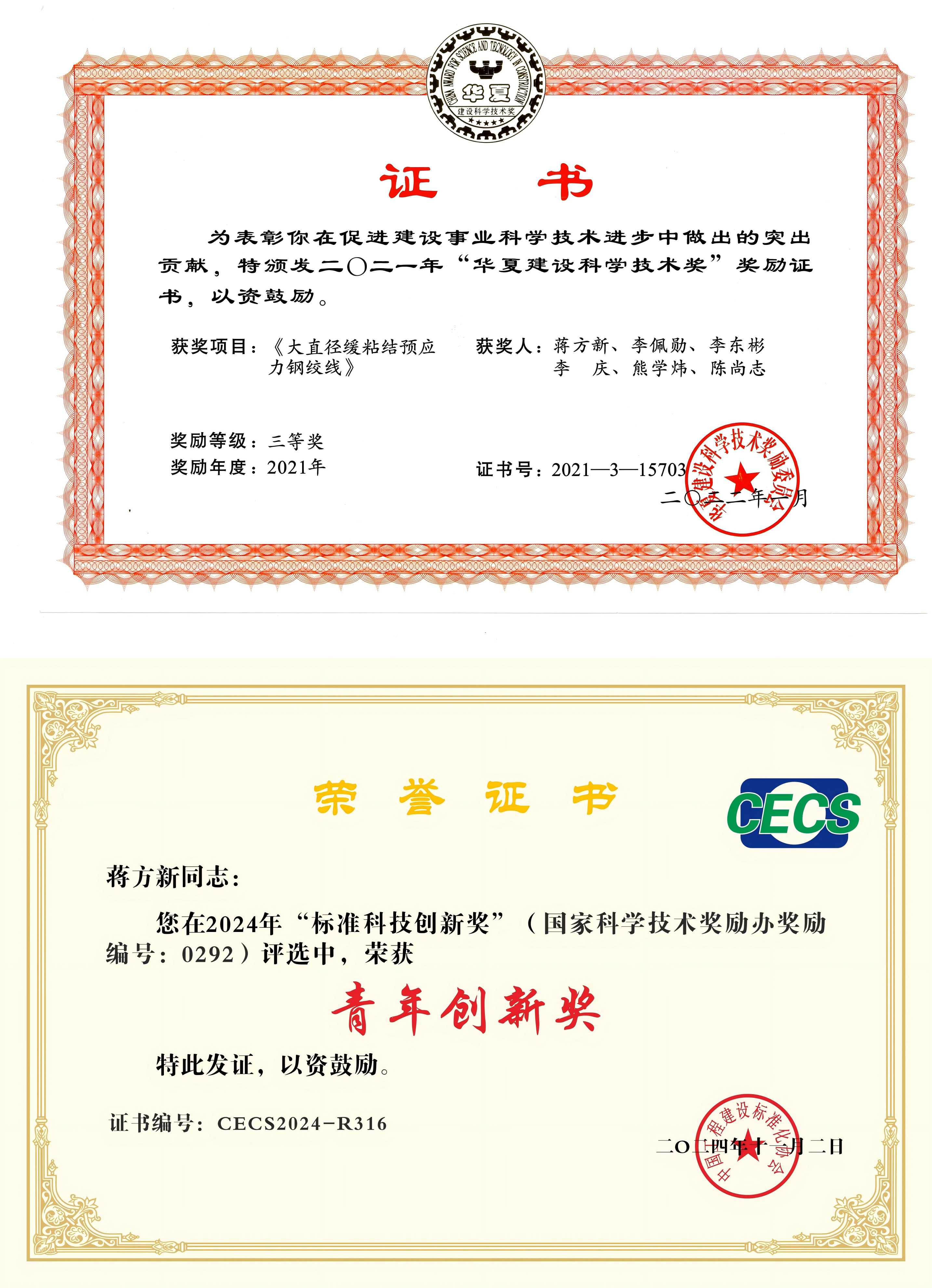 获得2021年度华夏建设科学技术奖三等奖、2023年度北京市科学技术进步奖二等奖、2024年河南省科学技术进步奖二等奖、2024年度中国工程建设标准化协会青年创新奖等省部级及学协会各类科技奖10项。