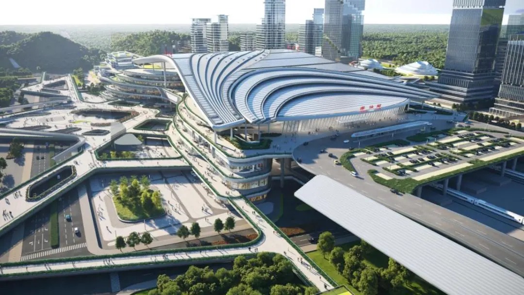 项目位于深圳市深汕特别合作区中部,由高性能结构事业部承接。是广汕铁路中间站(里程DK210+433.86~DK211+037.16),为广汕线与深汕线交汇的大型车站。站房规模48000平方米,总建筑面积356000平方米,采用“东站+西城”布局,5台13线(广汕场3台7线、深汕场2台6线),主体地上五层、地下一层,最高聚集3500人,远期高峰小时发送6442人。