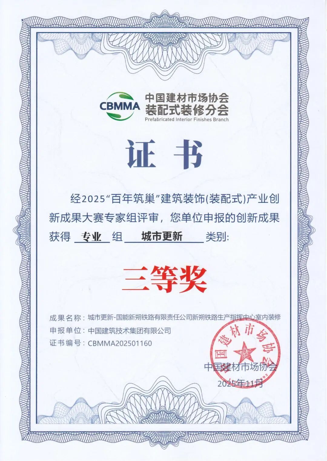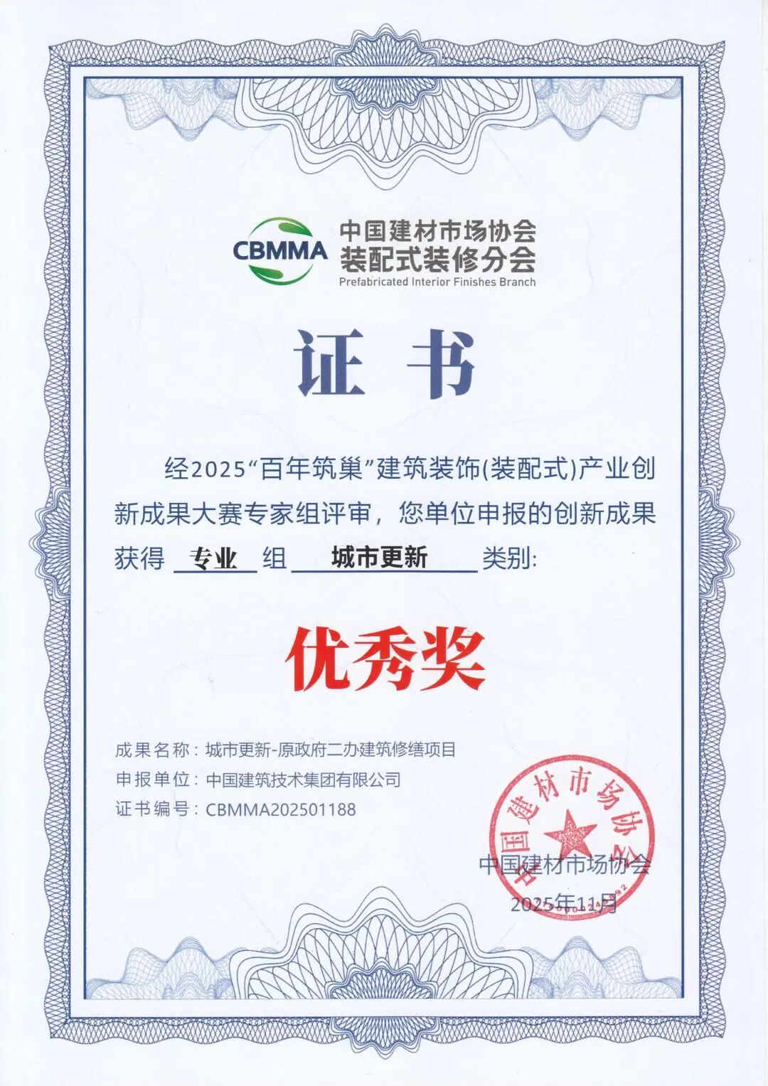 11月13日,由中国建材市场协会、中国建材市场协会装配式装修分会主办的2025首届装配式装修产业大会在浙江海宁会展中心举行。williamhill中国官方网站所属三个项目在大会同期举办的2025“百年筑巢”建筑装饰(装配式)产业创新成果大赛中获奖。