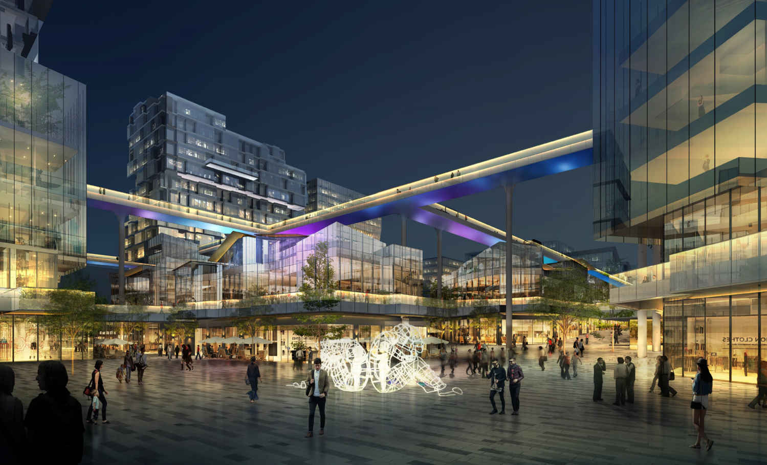 业态复杂:商场、影院、餐饮、超市、图书馆、办公区等。