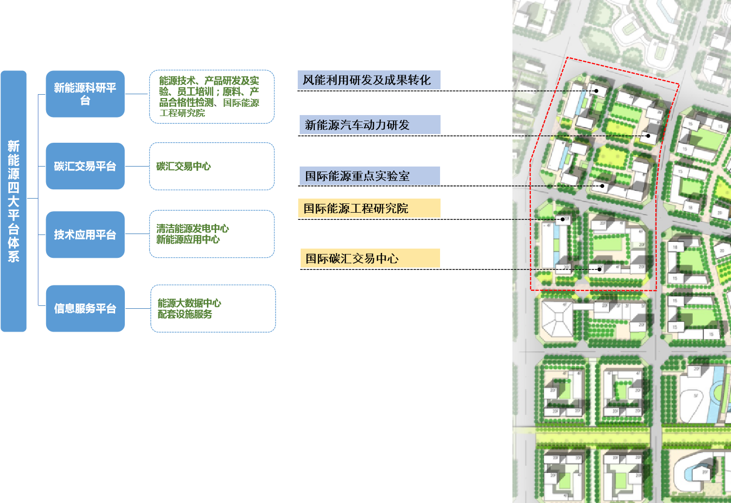 新能源产业协同——发展国际碳汇交易,通过市场约束激励企业低碳转型升级。发展能源科研孵化,通过技术提升探索清洁能源应用模式。发展能源试用推广,通过示范推广引领区域绿色生态发展。发展能源技术服务,通过智慧手段支撑能源智慧高效利用。