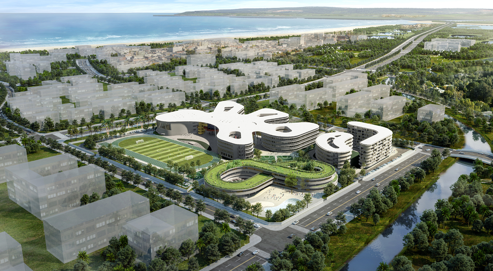 学校秉承国际化设计理念,集智慧化学习空间、舒适性生活空间、多层次活动空间于一体,涵盖高级中学与幼儿园,配套建设多功能体育设备和开放式场馆、“高颜值”教室、图书馆、多功能礼堂等9栋单体建筑,打造出友好的学习氛围、智能化起居环境、营造了精彩的生活社区。可供1728个高中学位与450名幼儿学童。